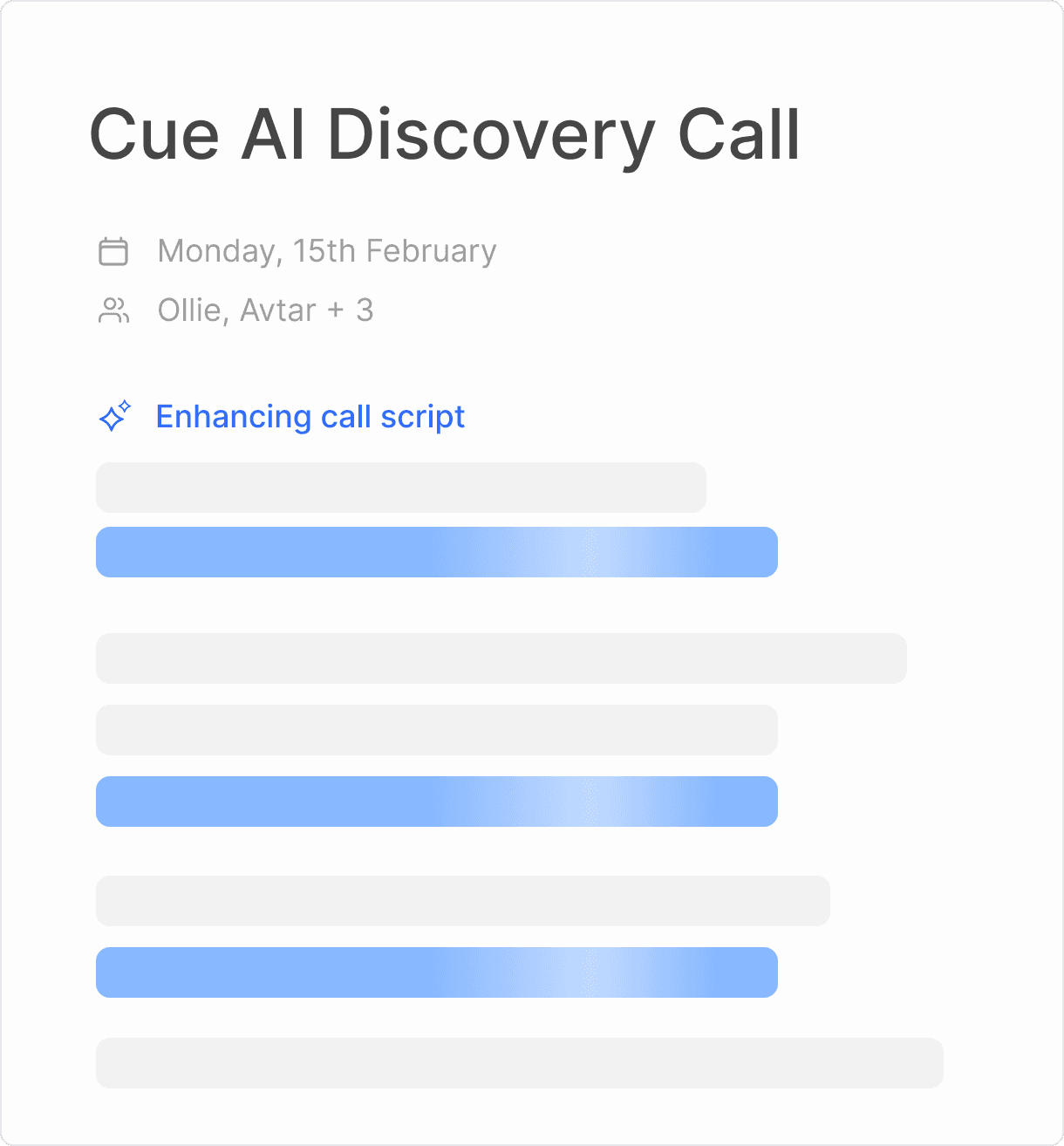 Cue creates personalised research reports and recommendations for every call, getting you up to speed in minutes and giving you the inside edge